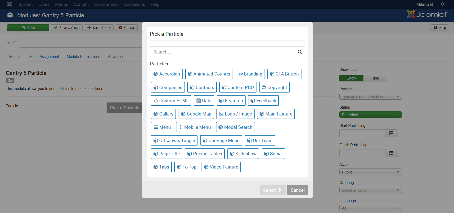 Gantry 5's new Particles system makes it easy to create, configure, and manage content blocks. Create new Particles in minutes, adjust their settings at multiple levels from global down to the individual block, and more!